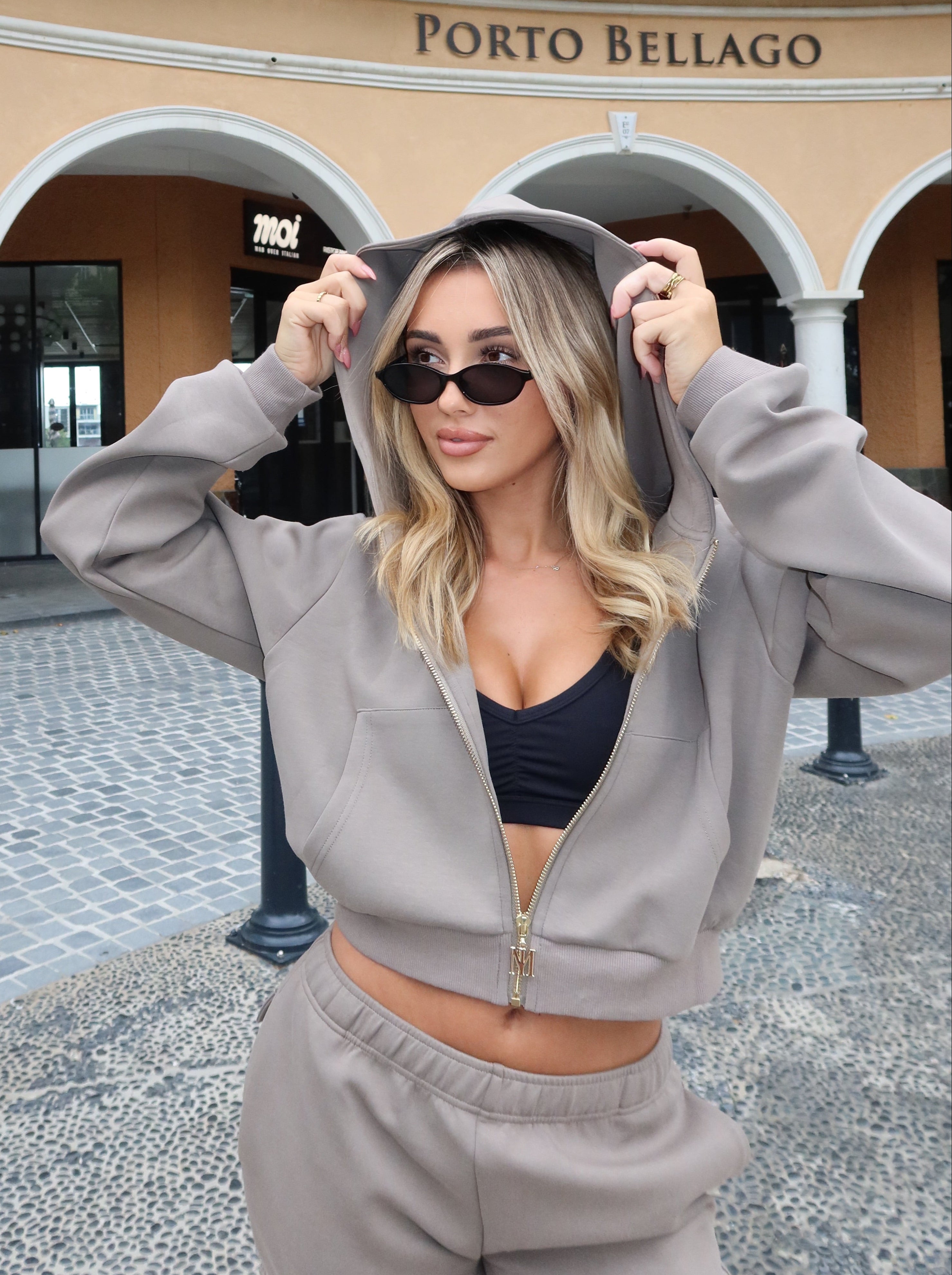 Designed to sit just above the waist, this piece features long sleeves, a double-lined hood for enhanced comfort, and completed with our signature gold zipper.