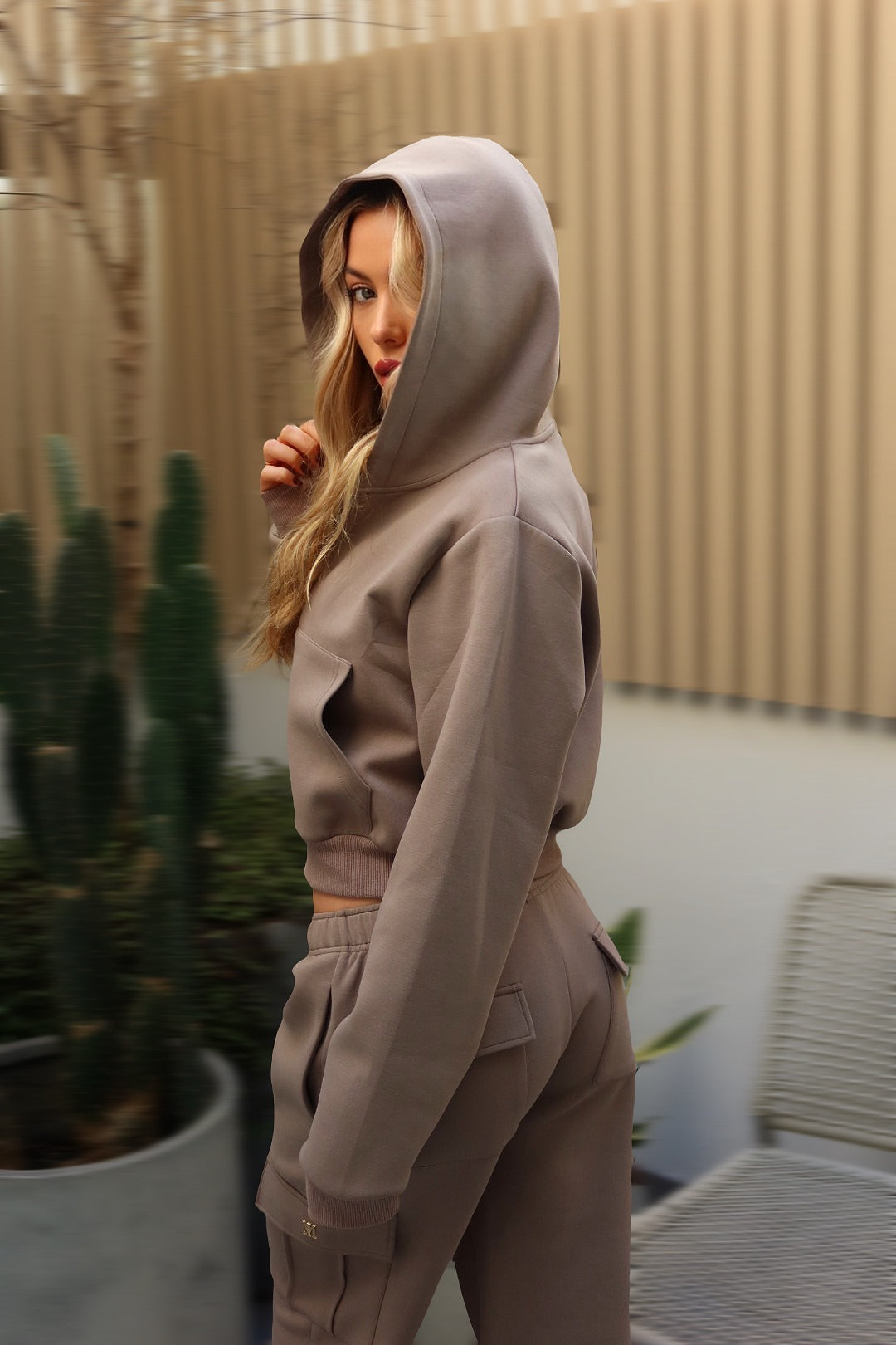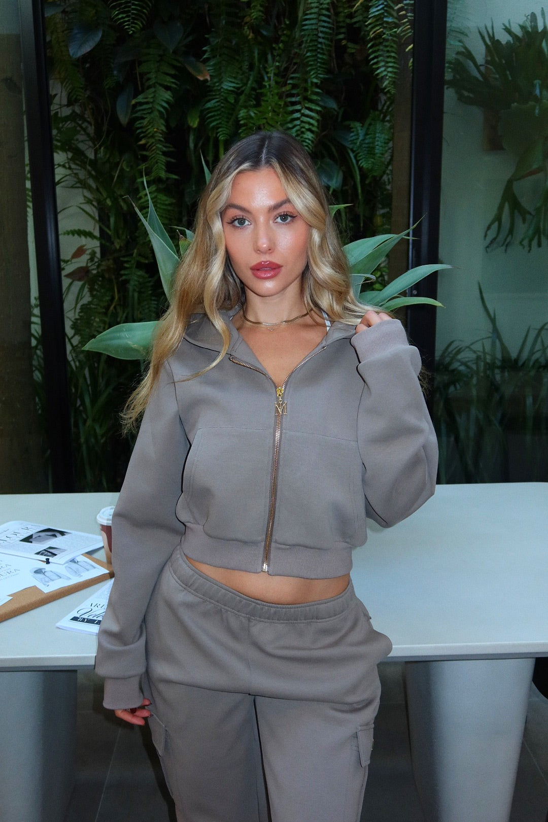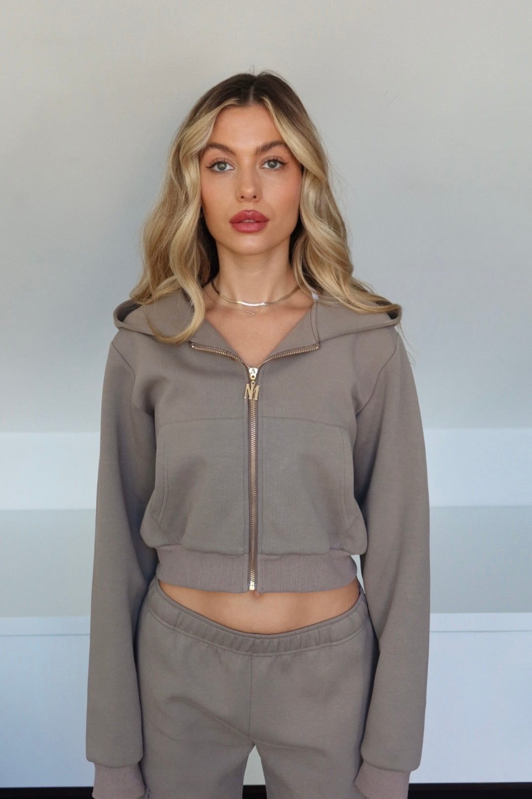 Designed to sit just above the waist, this piece features long sleeves, a double-lined hood for enhanced comfort, and completed with our signature gold zipper.